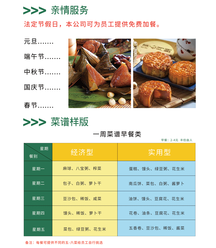 主營業務:企業食堂承包運營管理,現場配餐,打包快餐,蔬菜凈菜配送,副食品批發等