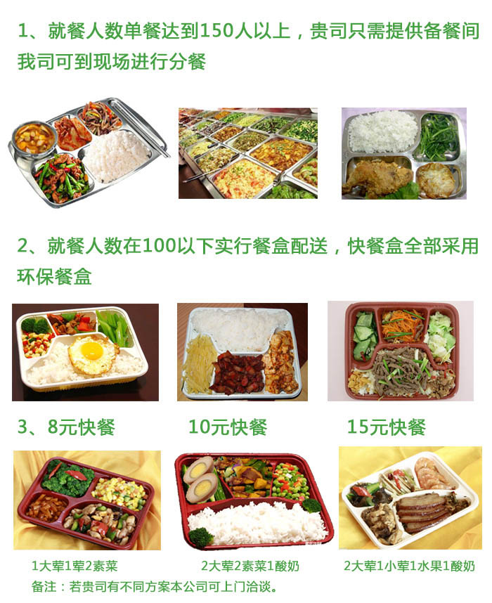 主營業務:企業食堂承包運營管理,現場配餐,打包快餐,蔬菜凈菜配送,副食品批發等