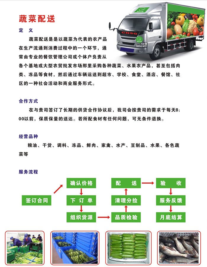 中膳餐飲管理公司長期為學校、工廠、醫(yī)院、機關(guān)食堂等提供蔬菜、農(nóng)副食品配送服務(wù),我們保證以下幾點: